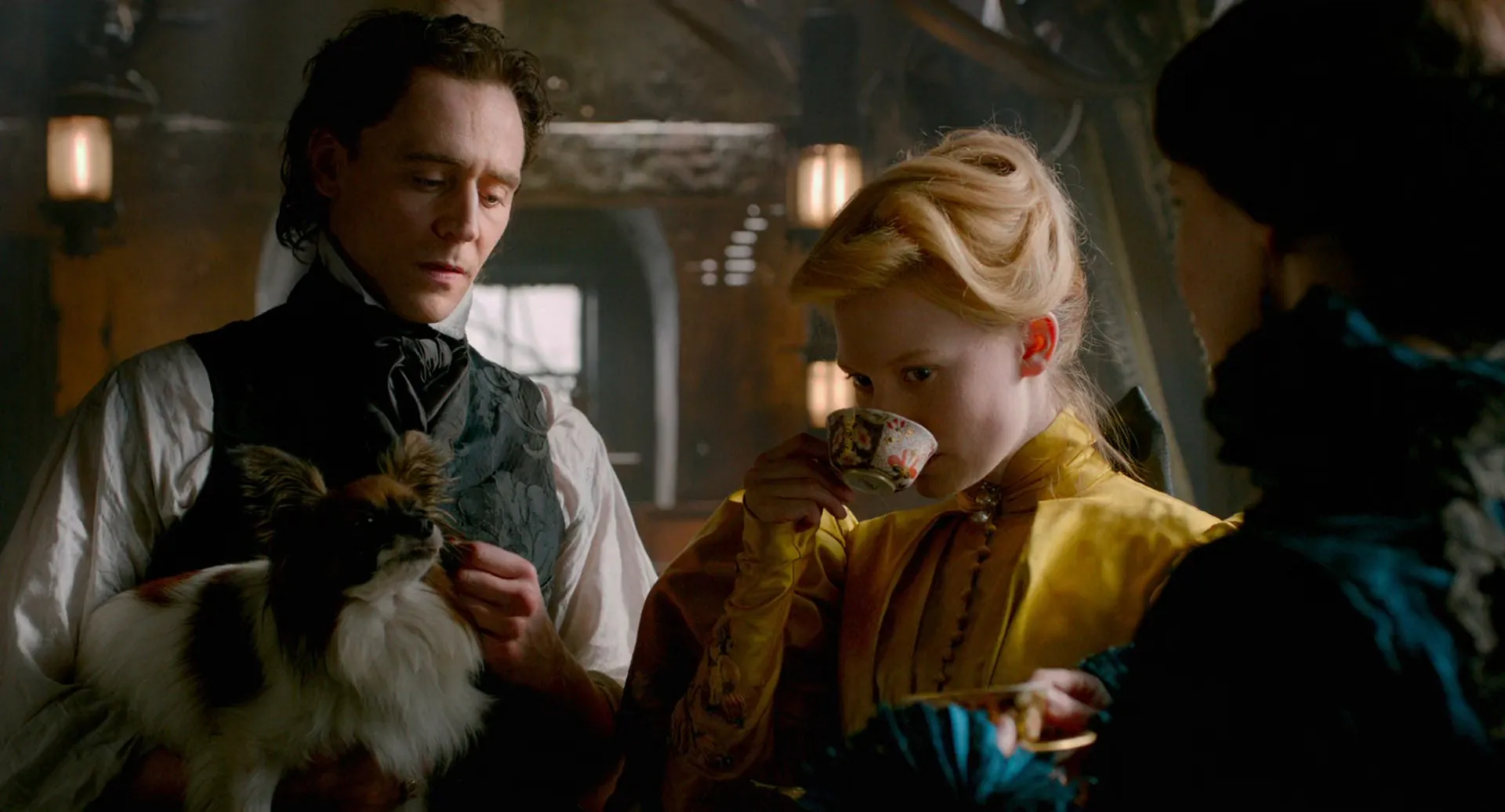 Cast: Mia Wasikowska as Edith Cushing, Jessica Chastain as Lady Lucille Sharpe, Tom Hiddleston as Sir Thomas Sharpe, Charlie Hunnam as Dr. Alan McMichael, Jim Beaver as Carter Cushing, Burn Gorman as Holly, Leslie Hope as Mrs. McMichael, Jonathan Hyde as Ogilvie, Doug Jones as Edith's Mother / Lady Sharpe, Bruce Gray as Ferguson, Emily Coutts as Eunice McMichael, Alec Stockwell as Finlay, Brigitte Robinson as Secretary Jane, Gillian Ferrier as Society Girl, Tamara Hope as Society Girl, Kimberly-Sue Murray as Society Girl, Sofia Wells as Young Edith, Joanna Douglas as Maid Annie, Bill Lake as Coroner, Jim Watson as Shipping Agent, Javier Botet as Enola / Margaret / Pamela, Peter Spence as Manager, Danny Waugh as Club Attendant, Sean Hewitt as Reverend, William Healy as Young Alan, Matia Jackett as Young Eunice, Karen Glave as Maid, Khadijah Roberts-Abdullah as Maid, John Carter Craig as Patient, Martin Julien as Postal Clerk, Brian Kaulback as Vendor, Richard Kerr as Vendor, Shane McPherson as Vendor, Tim Blake as Reverend, Thomas Dorey as Architect, Erik Bauersfield as Additional Voices (voice), Joan Washington as Additional Voices (voice), Beatrice Basso as Additional Voices (voice), Mitzi McCall as Additional Voices (voice), Susanne Blakeslee as Additional Voices (voice), Drew Davis as Additional Voices (voice), T.J. McGibbon as Additional Voices (voice), Anneliese Goldman as Additional Voices (voice), Jenna Weir as Additional Voices (voice), Amanda Smith as Beatrice (uncredited), Laura Waddell as Pamela Upton (uncredited)